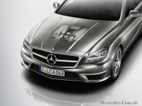 Von den anderen CLS-Varianten unterscheidet sich das AMG Topmodell durch eine eigenständige Motorhaube, breitere Kotflügel mit V8 BITURBO-Logo und eine spezifische AMG Frontschürze mit schwarz lackierter Querstrebe. Am Heck fallen der Diffusoreinsatz, die AMG Abrisskante auf dem Kofferraumdeckel, die AMG Sportabgasanlage mit zwei verchromten Doppelendrohren sowie die integrierte Nebelschlussleuchte ins Auge.
