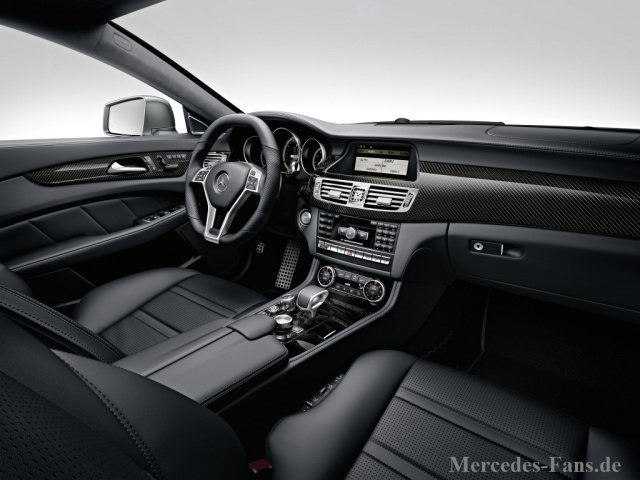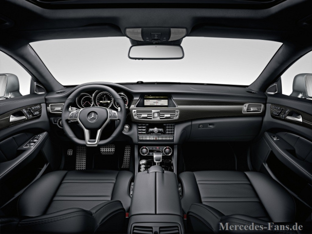 Sämtliche AMG-spezifischen Design- und Ausstattungsmerkmale ergänzen sich ideal mit dem neu gestalteten CLS-Interieur. Zur umfangreichen Serienausstattung zählen AMG Sportsitze in Leder Nappa, ein neues AMG Performance-Lenkrad im Dreispeichen-Design mit Aluminium-Schaltpaddles sowie oben und unten abgeflachtem Kranz und die AMG DRIVE UNIT mit kompaktem E-SELECT-Wählhebel. Über ein Dutzend Fahr-Assistenzsysteme tragen im neuen CLS dazu bei, Verkehrsunfälle zu vermeiden und die Unfallschwere zu vermindern. Neu sind der aktive Totwinkel-Assistent und der aktive Spurhalte-Assistent.