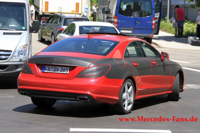 Das dürften vermutlich die letzten Schnappschüsse des Mercedes CLS Erlkönigs vor seiner offiziellen Premiere in Paris im Herbst sein. Der rot lackierte CLS ist nur noch schwach getarnt und lässt tief blicken. Rot? So zeigte sich zuletzt doch auch der [u]SLK-Erlkönig[/u]. Als Farbe auch für das Coupé gar nicht mal schlecht, oder?