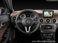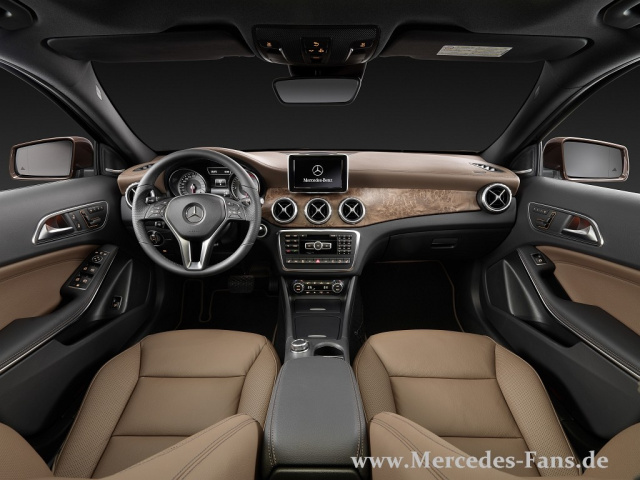 Der GLA verkörpert durch seine markanten Merkmale unser progressives Denken und besticht durch seine Off-Road Proportionen, erläutert Gorden Wagener, Vice President Design Daimler AG. Die klar definierten Oberflächen verkörpern Kraft und Souveränität, und es ist uns gelungen, so viel Emotionalität wie möglich mit so viel Klarheit wie nötig zu vereinen. In der Tat künden große Radausschnitte Mercedes-Benz liefert bis zu 19 ab Werk - von Bewegungsdrang, scharfe Kanten unterstreichen den Charakter und die prominente Front mit großen Kühleinlässen, auffälligem Leuchtendesign und Zentralstern transportiert einen selbstbewussten Auftritt. Der GLA dürfte ein Auto sein, nach dem man sich auf der Staße umdreht. Schade nur, dass Aussenstehende das Interieur nicht sehen, denn auch das hat es beim GLA in sich. Denn das starke und souveräne Erscheinungsbild des Exterieurs setzt sich im Interieur konsequent fort. Hinzu kommt eine besonders hohe Wertanmutung, die über die Formensprache, die Auswahl und die Kombinationsmöglichkeit der hochwertigen Materialien erreicht wird. Alle Oberflächen der Zierelemente sind in Silvershadow galvanisiert und erreichen so eine metallische Oberflächenwirkung mit cool touch-Effekt. Ihre Ausführung überzeugt bis ins Detail. Gleiches gilt für die hohe Präzision bei Fugen und Spaltmaßen.