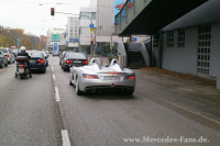 Es war nass, es war kalt. Es war vier Uhr morgens. Es war ein typischer Novembertag. Und ich musste mich beeilen, damit ich nicht meinen Flieger verpasse. Denn heute wollten wir uns mit unserem Leser Andreas Möller treffen, auf den als Gewinner des SLR Stirling Moss-Gewinnspiel eine besondere Überraschung wartete. Der Mercedes-Fan aus Pforzheim wusste, dass er uns als Beifahrer bei der Überführung des SLR begleiten sollte. Nun, so ganz stimmte die Sache nicht. Das Leben ist schließlich voller Überraschungen.
