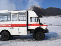 Einem Allesüberwinder wie dem Mercedes Unimog ist vor keiner Aufgabe bang. Einer wie er tanzt sogar auf dem Vulkan - wie zum Beispiel der Unimog 5000, der Jahr für Jahr Mai und Oktober Touristenströme von der Seilbahnstation des Ätna auf 2500 Metern Höhe zum Torre del Filosofo. Dort, in einer Höhe von 2935 Metern, beginnen Wanderungen für die Touristen, die das Brodeln aus nächster Nähe erleben wollen. Über 300.000 Touristen besuchen jährlich den Ätna auf Sizilien.