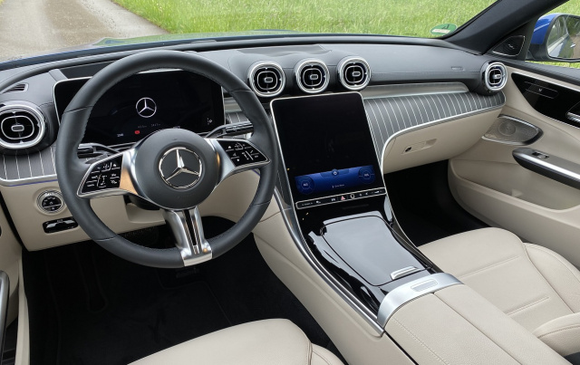 Fazit: Der Benziner C 300 und Diesel 220 d der neuen C-Klasse machen beide eine ganz hervorragende Figur. Das Interieur der neuen C-Klasse W206 ist eine Wucht, und das von vielen gefürchtete, große Tablet macht richtig Spaß. Der C 300 mit 258 PS begeistert vor allem mit seinem Sportsgeist und stellt den Fahrspaß ganz klar vorne an. Preislich müssen Kunden für den C 300 4MATIC tief in die Tasche greifen: Der starke 2-Liter-Benziner startet bei stattlichen 50.271,55 Euro.