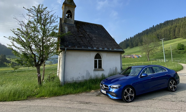 Schnell suchen wir den Ausweg aus dem hektischen, innerstädtischen Verkehr und begeben uns auf die Landstraße. Hier kann der C 300 4MATIC zeigen, dass er nicht nur ein Langstreckenfahrzeug ist, sondern auch sportlichen Fahrspaß nicht missen lässt. Schließlich sind 258 PS in einer C-Klasse durchaus eine Ansage. Im Comfort-Modus manövrieren wir uns über die Landstraße, mal etwas schneller, mal etwas gediegener. Dabei fällt uns auf, dass der Bremspedalweg der C-Klasse gewöhnungsbedürftig lang ist, bis die Scheibenbremsen richtig zupacken. Hier hätten wir es gerne etwas direkter.
