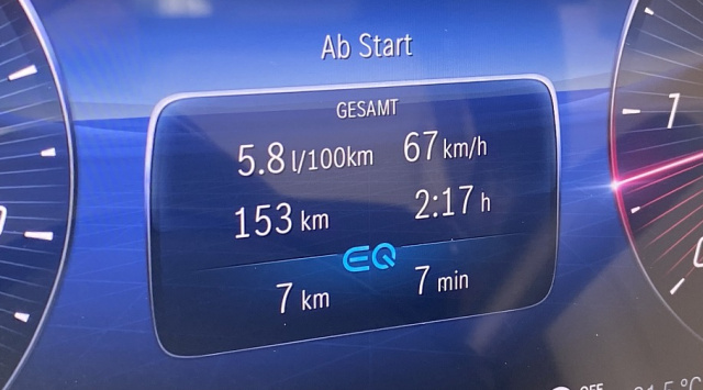 Seinen großen Vorteil gegenüber dem Benziner spielt der 4-Zylinder-Diesel beim entspannten Cruisen auf der Langstrecke aus. Da purzeln die Verbrauchswerte sichtbar in den Keller. Vom Konzern wird der 200 d mit einem Durchschnittsverbrauch von circa 5,2 Litern angegeben. Auf unseren zügigen Testfahrten durch bergiges Land landen wir nach 153 Kilometern bei einem zahmen Verbrauch von 5,8 Litern. Und da wären noch weniger drin!