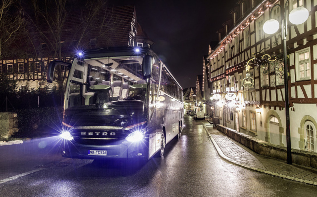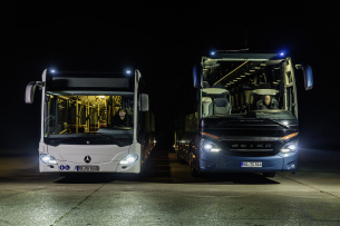 So ist nicht nur im Pkw-Bereich, sondern gerade auch bei Omnibussen eine optimale Fahrzeugbeleuchtung äußerst wichtig. Bei den führenden Omnibusmarken Mercedes-Benz und Setra, die seit Jahrzehnten sicherheitstechnische Entwicklungen gezielt vorantreiben, ist das Thema Sicherheit seit jeher von herausragender Bedeutung. Schließlich werden in ihren Fahrzeugen tagtäglich unzählige Fahrgäste befördert, und die sollen wohlbehalten am Ziel ankommen. Aktive Sicherheit ist deshalb ein zentraler Punkt, um Unfälle präventiv zu verhindern. Dazu gehört eine optimale Sicht für den Busfahrer bei schlechter Witterung und besonders bei Fahrten in der Nacht. So war es ein weiterer, konsequenter Schritt in Richtung Verkehrssicherheit, dass es die Busse von Daimler, darunter der Stadtlinienbus-Bestseller Mercedes-Benz Citaro und die Reisebusse Setra TopClass 500 und ComfortClass 500, nun optional mit LED-Scheinwerfern gibt.