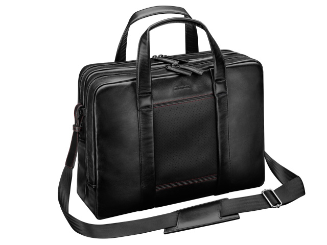 Besonders edel ist die Smartphone-Hülle aus echtem Lammleder. Angelehnt an das Design der AMG-Sitze, präsentiert sich das schwarze Case mit eleganter Perforation. Dank der lederummantelten Klick-in-Halterung lässt sich das Mobiltelefon spielend leicht in die Hülle einsetzen oder aus dieser entnehmen. Diverse Fächer für Karten und Geldscheine runden die Ausstattung der handgefertigten Hülle ab. Dazu passt die ebenfalls aus hochwertigen perforierten Lammleder gefertigte neue Geldbörse. Rote Kontrastnähte sowie die Hochprägung des AMG-Logos setzen Akzente und runden das stimmige Design ab. Im Inneren stehen zwei Scheinfächer, vier Kreditkartenfächer, drei größere Steckfächer für Fahrzeugschein, Personalausweis und Co. sowie ein Kleingeldfach mit Druckknopf zur Verfügung.