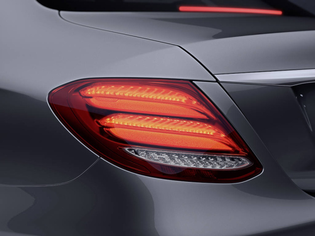 Auch die neue E-Klasse wird mit Heckleuchten an den Start gehen, die mit Mehrpegelfunktionalität ausgestattet sind, bis heute nach wie vor ein Mercedes-Benz Alleinstellungsmerkmal. Bremslicht und Blinker werden je nach Fahrzustand und Helligkeit des Umfeldes (Tag/Nacht) mit unterschiedlicher Intensität betrieben.