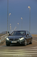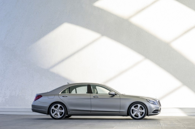 Mit ihrer langen Motorhaube, der fließenden, kuppelförmig gespannten Dachlinie und dem leicht abfallenden Heck besitzt die neue S-Klasse klassische Limousinen-Proportionen. Gezielt wurde der Größen- und Raumanspruch so umgesetzt, dass die neue S-Klasse repräsentativ wirkt und die schwungvolle Dachlinie auch dem sportlich-coupéhaften Anspruch gerecht wird.