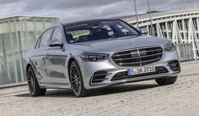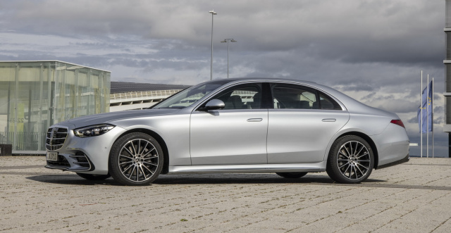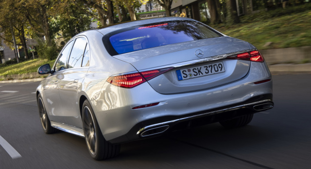 Bereits der Erstkontakt in einem Stuttgarter Parkhaus beeindruckt tief. Dem Designteam um Chef Gordon Wagener ist es gelungen, eine elegante Linienführung mit einer geduckten Haltung zu kombinieren und damit eine sehr gefällige Silhouette zu schaffen. Einzig auf stilistische Überraschungen wartet man beim Rundgang vergeblich. Die Neuausrichtung im Design, die bei den Vorgänger-Baureihen mehr oder minder stattfand, ist hier nicht zu erkennen. Details wie das Leuchten-Design an Front und Heck kennt man bereits von anderen Baureihen, wenn auch die Details nochmals aufwendig verfeinert wurden. Auch die cleane Flanke – Stichwort „sinnliche Klarheit“ – und die wenigen Charakterlinien sind bereits bekannt. Langweilig ist das Design deswegen nicht, sondern solide und gut gemacht. Mit einem cw -Wert von 0,221 gehört die S-Klasse zu den strömungsgünstigsten Fahrzeugen überhaupt, besonders im Segment der Luxuslimousinen. Aerodynamische Maßnahmen an Karosserie, Unterboden und Anbauteilen ermöglichen das gute Abschneiden in Windkanal und Realverkehr.