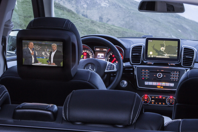 Die drehmomentstarke Maschine, die an das neue 9-Gang-Automatikgetriebe gekoppelt ist, hat stets genug Kraftreserven und treibt den schweren SUV souverän an. Dabei erzieht sie zur Gelassenheit und nimmt dem GLE jede Hektik. Auch das Getriebe schaltet blitzschnell, aber ohne Hektik und hat stets den passenden Gang parat. Die zeitweise Lethargie der alten 7G-Tronic hat die neue Schaltbox dagegen komplett abgelegt. Passend zur entspannten Fahrweise räkelt man sich in edlem Bicolor-Leder und genießt die Annehmlichkeiten an Bord. Davon gibt es jede Menge, zum Beipiel das große Rear-Entertainment-System mit zwei Kopfstützen-Monitoren und Fernbedienung, das Panorama-Dach oder das Comand-Online-System mit DAB+-Radio, TV und DVD. Selbstredend sind diese Features größtenteils aufpreispflichtig. Der riesige Kofferraum sowie das großzügige Platzangebot sind dagegen stets an Bord und lassen keinerlei Wünsche offen.