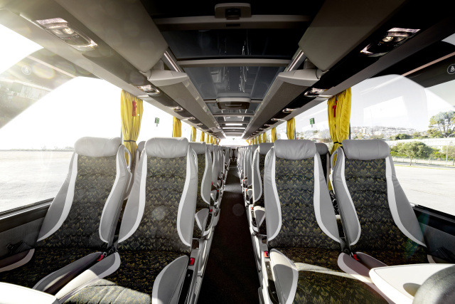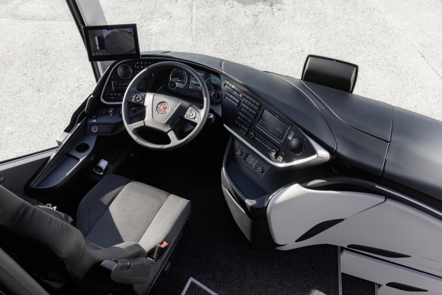 Für den heutzutage so begehrten Fahrer bietet die neuen Setra-Modelle perfekte Arbeitsbedingungen. Er wird nicht nur durch die neuesten Systeme Active Drive Assist 2 und Active Brake Assist 5 unterstützt, sondern kann auch durch das neue 360°-Kamerasystem das Umfeld des Busses gut überblicken. Perfekte Ergonomie, ein intuitives Bedienkonzept sowie Komfort-Features wie die elektronische Feststellbremse oder Keyless Start machen die Arbeit fast zum Vergnügen. Apropos Vergnügen: Das neue Infotainment System mit sieben Zoll großem Touchscreen-Monitor ist vom Fahrersitz gut erreichbar. Die Bedienung kann auf unterschiedliche Weise erfolgen: über die berührungsempfindlichen Tasten der Touchscreen-Oberfläche, per Sprachsteuerung sowie über klassische Tasten und Drehregler. Lautstärkeregelung und Telefonie kann der Fahrer außerdem über die Tasten des Multifunktionslenkrads regeln. Dies verringert die Ablenkung während der Fahrt und erhöht somit die Sicherheit.
