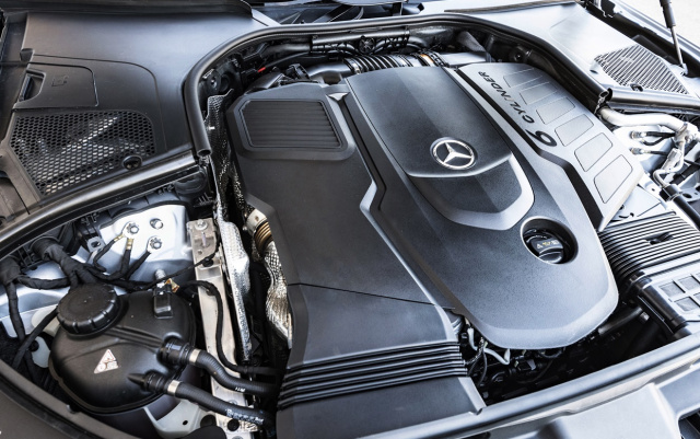 Der drei Liter große Sechszylinderdiesel des Schwaben leistet 243 kW / 330 PS und ein stattliches Drehmoment von 700 Nm. Aus dem Stand geht es Dank serienmäßigem Allradantrieb und gut abgestimmter Neungangautomatik in kurzen 5,4 Sekunden auf Tempo 100 und bei 250 km/h wird abgeriegelt. Der Selbstzünder ist exzellent gekapselt und so lässt kaum etwas einen Dieselmotor vermuten. Selbst unter Last und mit entsprechenden Drehzahlspitzen könnte es sich auch um einen Achtzylinder handeln. Der Schub ist kraftvoll, aber nicht gewaltig und so bleibt die Frage, wieso das Luxusmodell aus Sindelfinger Produktion nicht noch mehr Pferdestärken unter der langen Lumousinenhaube hat? 350 oder 380 PS wären angesichts der breiten Motorenpalette mit bis zu 700 PS angemessen für eine S-Klasse, die als Leergewicht mehr als zwei Tonnen auf die Waage bringt. Dabei liegt der Motor überraschend leicht auf der selbstverständlich luftbefederten Vorderachse. Die Lenkung ist gerade in geringen Tempi leichtgängig und allemal präzise. Wie schon beim Triebwerk könnte es durchaus noch etwas mehr – diesmal an Präzision - sein; das würde jedoch Komforteinbußen bedeuten und in Sachen Komfort machen die Mercedes-Entwickler nur höchst ungern Kompromisse.