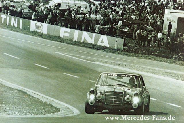 Internationaler Durchbruch 1971: der AMG 300 SEL 6.8 erzielt beim 24-Stunden-Rennen von Spa-Francorchamps (Belgien) völlig überraschend den Klassensieg und landete auf dem zweiten Gesamtrang.