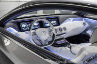 Natürlich fehlen die aus der S-Klasse bekannten Bildschirme im Format 8:3 und mit einer Diagonale von 30,7 cm (12,3 Zoll) nicht. Beim Concept S-Class Coupé konnten die komplett verglasten Farbdisplays noch flacher gehalten werden und scheinen noch stärker frei zu schweben. Die Farbstimmung auf den Displays ist bläulich und damit sportlich-modern gehalten.In der Mittelkonsole befindet sich ein Touchdisplay, auf dem vier Weltzeituhren angezeigt werden. Welche Uhren abgebildet werden, entscheidet der Fahrer: Dazu kann er zunächst im Display auf einem Globus scrollen und eine Zeitzone auswählen, dann erhält er in einem Pulldown-Menü die dazu passende Städteauswahl. Entworfen und umgesetzt wurde das Weltzeituhrkonzept von Designern und Ingenieuren im Mercedes-Benz Advanced Design Center in Palo Alto, Kalifornien/USA.