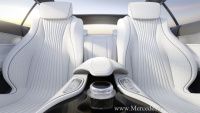 Wie ein funkelndes Juwel wirkt die Central Command Unit in der Mittelkonsole. Ihre extrem hochwertige Black Diamond-Oberfläche sorgt für räumliche Tiefe. Beim Black Diamond-Verfahren wird ein Edelmetall bei Temperaturen von 1000°C mittels des chemischen Gasphasenprozesses CVD (Chemical Vapour Deposition) auf eine Hochglanzchromoberfläche aufgedampft und reagiert mit der Werkzeugoberfläche zu einer Schicht, die eine sehr hohe Haft- und Kratzfestigkeit erhält. Die Türtafeln des Concept S-Class Coupés sind in Aluminium ausgeführt. Man beachte die feinen topographische Linien, die in das Metall gefräst uwurden. Sie nehmen die Konturen der Tür-Bedienelemente auf. Dadurch entsteht ein interessantes Lichtspiel mit kleinen funkelnden Highlights. Wie das gesamte Interieur besitzen auch die mit Kalbsleder bezogenen Sitze einen äußerst dynamischen und natürlichen Fluss der Linien. Der Fahrzeughimmel besteht aus von Hand gewobener Seide und unterstreicht so die Exklusivität des Interieurs.