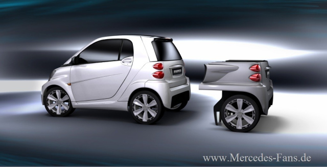 Ja, bei diesem Auto kommt wirklich immer das Beste zum Schluss: Und dies ist ordentlich Reichweite, wenn die üblich zur Verfügung stehenden 120 Kilometer einfach zu wenig sind. Ein "Energy-Pack" mit einem Verbrennungsmotor oder Range-Extender, mit Akkus bepackt oder durch eine Brennstoffzelle befeuert sorgt für die entscheidenden Extra-Kilometer zu entfernteren Zielen. Ebenso so simpel wie smart daran: die angedockte dritte Achse treibt die mitlaufende zweite an und lädt dabei den bordeigenen Akku des Stadtflitzers wieder auf. Geboren ist der erste Vario-Hybrid - wie Frank M. Rinderknecht seinen Kilometer-Spender nennt. In der heimischen Garage speichern und puffern die Akkus des Energy-Packs den Solarstrom vom Hausdach. So lässt sich völlig CO2-frei wohnen und fahren. Ganz schön smart dieser Schweizer!