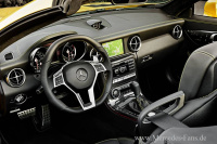 Der von der Ducati Streetfighter 848 inspirierte gelbe Farbton Streetfighter yellow des SLK 55 AMG fasziniert aus jedem Blickwinkel. Die außergewöhnliche Lackierung sorgt für eine hohe Anziehungskraft. Bei entsprechender Nachfrage könnte der spezielle Farbton als individuelle Sonderausstattung aus dem AMG Performance Studio angeboten werden. Eine optisch perfekte Ergänzung dazu ist der Innenraum des SLK 55 AMG. Die gelben Kontrastnähte bilden einen reizvollen Kontrast zur schwarzen Nappa-Lederausstattung sie finden sich auf den Türmittelfeldern, Bordkanten, Armauflagen, belederten Überrollbügeln, der Instrumententafel, am Schaltbalg sowie am AMG Performance Lenkrad.