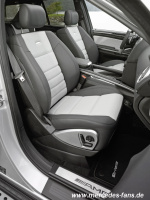 Eine Nappa-Volllederausstattung im Rautendesign im Farbton Porzellan mit schwarzen Biesen sorgt ebenso für höchste Exklusivität wie die vollständig belederte Instrumententafel, die Mittelkonsole und die Türverkleidungen in der Farbkombination Schwarz/Porzellan. Der Dachhimmel in Alcantara Anthrazit sowie Holzzierteile in tiefglänzendem, schwarzem Klavierlack runden den Innenraum des ML 63 AMG Performance Studio ab.
