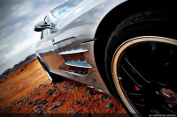brachial. Diese Präzision mit der jede Bewegung des Gaspedals umgehend in Vortrieb umgesetzt wird. Bis zu 820 Nm bei 4000 U/min zaubert der 5,5 Liter V8 Kompressormotor hervor. Das straffe, perfekt abgestimmte Fahrwerk, das in der 722 Edition noch mal um 10 Millimeter tiefer gelegt wurde, giert geradezu nach Kurven. Einschließlich der präzisen Lenkung, die dem Fahrer in jeder Kurve ein präzises Feedback wiedergibt. Die Soundkulisse, die hier auf den einsamen Wüstenstraßen erst richtig zur Geltung kommt, hat gefährliches Suchtpotential.