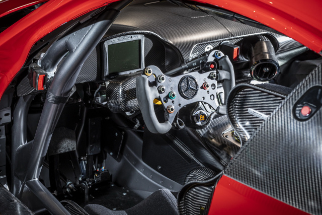 Interieur: Sonderlackierung Chassis: Graphite Metallic matt, Sitz mit „50 Years Legend of Spa“-Logo, rote Gurte, AMG-Logo in Türverkleidungen und Einstiegleisten rot lackiert, Plakette mit Originalunterschrift von Hans Werner Aufrecht, Plakette „50 Years Legend of Spa – One of One“, Instrumententafel in Sichtcarbon mit mattem Finish