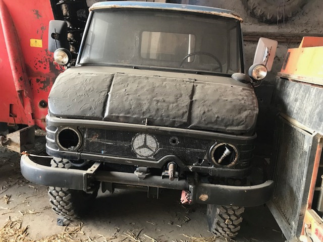 "Nach langem Überlegen und viel Recherche habe ich festgestellt, dass bei uns in der Schweiz die Unimogs sehr hoch gehandelt werden und auch noch eine hohe Fan-Gemeinde haben. Das passte mir gut, denn ich bin selber leidenschaftlicher Mercedes Fan. Nach einiger Zeit der Suche fand ich dann einen Unimog 406 U65 Baujahr 63/64 mit dem OM312 Diesel Motor", erzählt René. Er kaufte den Unimog trotz seines schlechten Zustandes. Die Kabine verbeult und vom Rost zerfressen. Die Brücke fehlte komplett. Dass der Unimog in den letzten 10 Jahren zum Schneeschieben benutzt wurde, sah man dem Gaggenauer Urgestein deutlich an.