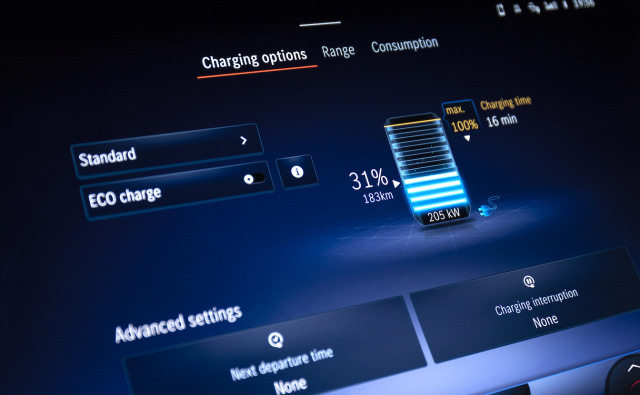 Gerade auf dem Heimatmarkt dürfte das den ein oder anderen Kunden abschrecken, denn Tempo 210 sind auf der linken Autobahnspur nicht viel. Insbesondere, weil der Antrieb des Mercedes EQS gerade als 580 4matic keine Wünsche offenlässt. Die beiden Elektromotoren an Front und Heck des 5,22 Meter langen Mercedes EQS leisten 385 kW / 522 PS und ein maximales Drehmoment von 855 Nm. Die verzögerungslose Beschleunigung des Mercedes EQS ist gerade beim allradgetriebenen 580er unabhängig vom angewählten Fahrprogramm oder dem Grad der eingestellten Rekuperation spektakulär. Denn die 0 auf Tempo 100 in 4,3 Sekunden haben keinen nennenswerten Realitätsbezug, doch die Zwischenspurts sind nahezu aus jedem Tempo nicht weniger als atemberaubend – das kann eben nur ein Elektromotor. Mit DC-Schnellladung mit maximal 200 kW soll der EQS in 15 Minuten um bis zu 260 Kilometer erstarken oder in einer halben Stunde auf 80 Prozent seiner Leistungsfähigkeit kommen. An der heimischen Wallbox mit 11 Kilowatt vergehen aktuell zehn Stunden, bis das Akkupaket wieder komplett gefüllt ist.