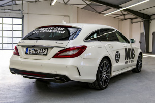 Nein, überhaupt nicht. Eher Wiederholungs- bzw. Überzeugungstäter. Denn für unsere Redaktion ist der mit vier rahmenlosen Türen veredelte CLS Shooting Brake geradezu ideal. Er bietet Platz für vier Personen und kann dank eines großen Kofferraum von bis zu 590 l (1.550 l bei umgeklappter Rückbank) zuladen. In Platznöte sind wir auch wenn wir unsere MIB-Shirts oder MIB-Caps transportieren mussten jedenfalls nie gekommen. Wenn wir für SCHÖNE STERNE oder die MIB-Rallye zusätzlich Transportplatz benötigten, haben wir uns mit einer G-Klasse Pritschenwagen (Danke GFG) und/oder einem Vito beholfen.