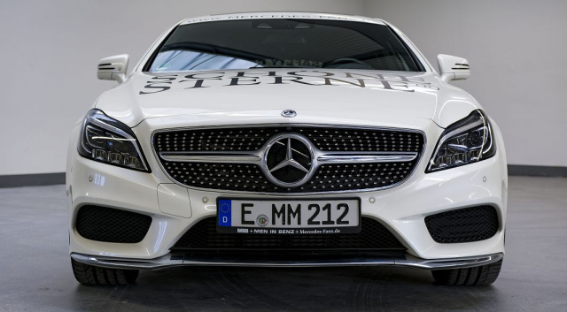 Übrigens, bevor jetzt hier jemand meint, wir würden den CLS verträumt durch die rosarote Brille sehen, auch weil Mercedes uns das Auto vor die Tür gestellt hätte. Da können wir getrost drauf antworten, dass Mercedes-Benz dies nicht getan hat. Wir haben brav jeden Monat unsere Leasingraten bezahlt und können dem Auto in Komfort, Fahrvergnügen, Zuverlässigkeit und Sicherheit frei von jeglichen Zwängen nur Bestnoten ausstellen. Nach einem 560 SE, einem 350 CDI 4MATIC T-Modell und einem weiteren CLS 350 CDI 4MATIC Shooting Brake sollte auch der neue CLS Shooting Brake zuverlässig bei der täglichen Arbeit begleiten. Um seinen hohen Aufmerksamkeitswert im Straßenverkehr zu nutzen, haben wir ihn genauso beklebt wie seinen Vorgänger. Bis auf die Motorhaube. Hier steht nun gut sichtbar zu lesen: SCHÖNE STERNE.