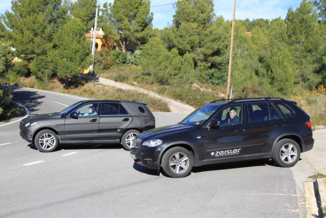 Zu Vergleichszwecken erprobten die Mercedes-Testfahrer, auch die Fahrzeuge von zwei Mitbewerbern. Zum einen hatten sie einen BMW X5...,