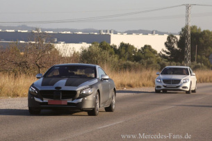 Die Fotos zeigen zwei verschiedene Prototypen, denn das dunklere S-Coupe zeigt sich mit AMG-Paket und der silberne Prototyp ist in der normalen Ausstattung.