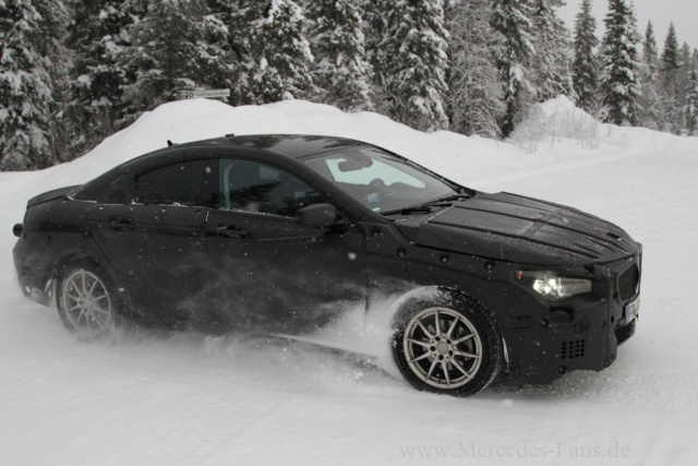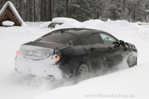 Die neuen Bilder von dem kompakten Viertürer, der auf Basis der Mercedes A/B-Klasse ins Rollen kommt, sind am Polarkreis entstanden.