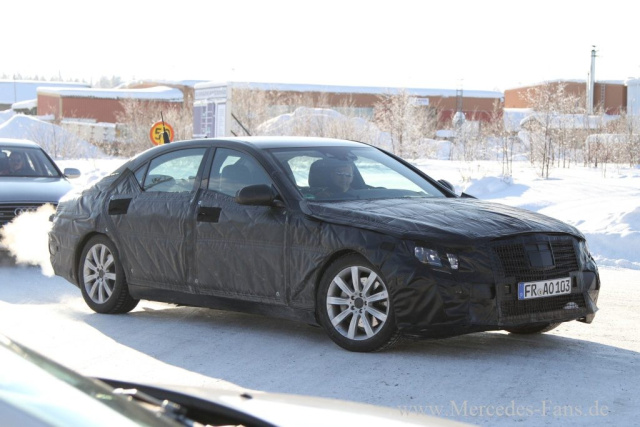 Trotz der Verpackung an den Flanken sieht man dem Mercedes S-Klasse Prototypen seine Ähnlichkeit zum aktuellen E-Klasse Design an.