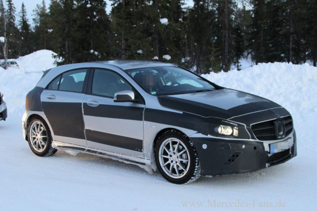 Die Debütanten-Modelle der neuen Mercedes-Benz A-Klasse stehen wohl schon in Genf. Vor der großen Premiere im Blitzlichtgewitter der Fotografen toben die A-Klasse-Prototypen noch im Schnee. Der Mercedes-Fans.de Erlkönig-Fotograf hat bei den Mercedes Wintertests noch einmal die neue A-Klasse als Erlkönige vor die Kamera bekommen. Wie man sieht, verlieren die A-Klasse Prototypen kurz vor der Premiere nochmals an Tarnung.