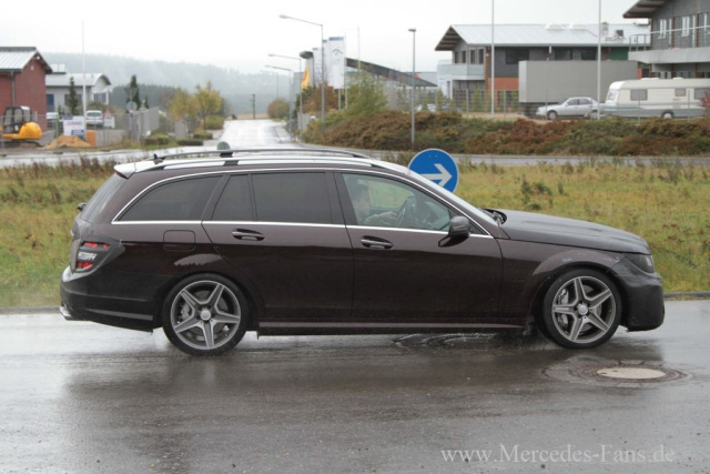 In der Seitenansicht bewahrt das Mercedes AMG T-Modell Testfahrzeug weitgehend dezent die Form.