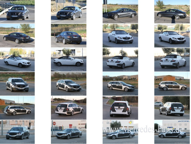 Vier auf einen Streich. Der Mercedes-Fans.de Erlkönigjäger hat ein besonderes Jagdglück gehabt. Eine große Testgruppe von Mercedes Benz mit allen E-Klasse Facelift Modellen wie dem E-Coupe, E-Cabrio, E-Klasse Limousine und T-Modell ist ihm "ins Netz" gegangen. Alle Karosserievarianten von allen Seiten mit weniger Tarnung auf einen Blick bzw. in einer Galerie können Sie in diesem Beitrag mit großer Bildergalerie sehen.