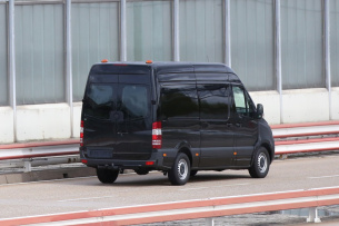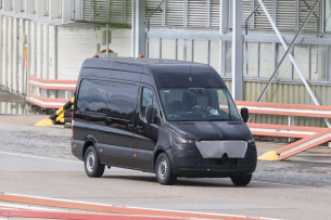 Sternzeit 04-05-2016. Es ist Erlkönig-Premierentag. Der Debütant ist der kommende Mercedes-Benz Sprinter. Zwar bringt Mercedes-Benz die nächste Generation vom Sprinter frühestens 2018 auf den Markt - gleichwohl kann Mercedes-Fans.de schon heute die ersten Bilder vom neuen Kastenwagen zeigen. Getarnte Prototypen des neuen Mercedes Benz Sprinter drehen derzeit erste Testrunden mit neuer Front und völlig getarntem Innenraum. Dass der nächste Sprinter ein ähnliches Gesicht wie die aktuelle V-Klasse bekommt, ist auf den Bildern des Mercedes-Fans.de-Erlkönigjägers gut zu erkennen. Ebenfalls deutlich zusehen: die neue Form der Scheinwerfer und die neue Motorhaube. (Bilder: S. Baldauf/SB Medien)
