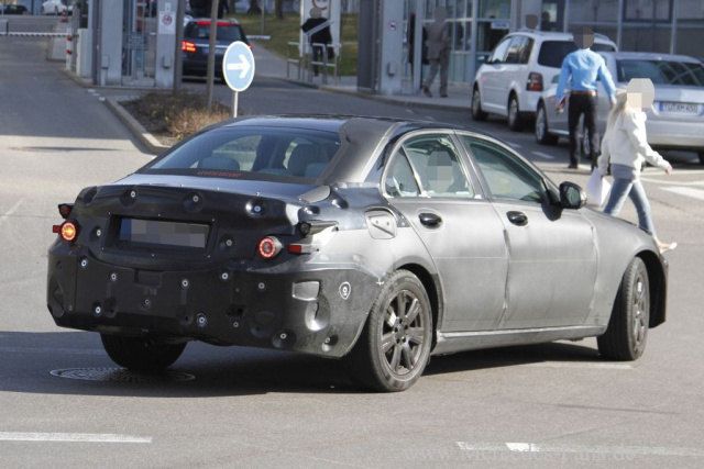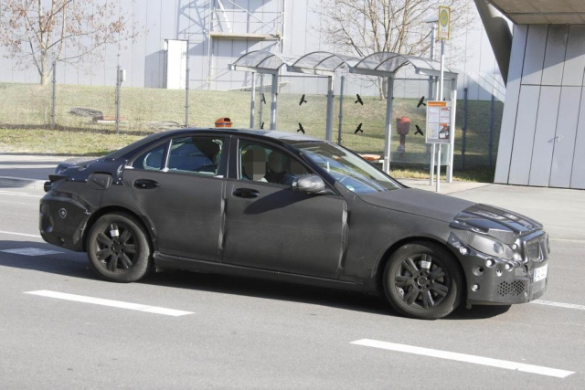 Der Prototyp der C-Klasse ist noch sehr stark getarnt unterwegs.