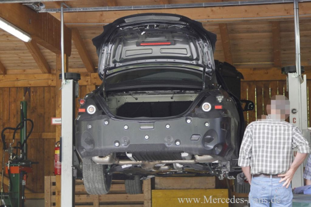 Der Mercedes-Fans.de Erlkönig-Fotograf konnte dem C-Klasse-Prototypen auch unter den Rock schauen.