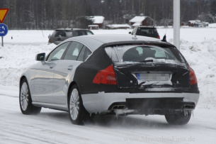 Hinten gibt sich das neue Mercedes-Modell noch etwas zugeknöpft. Der CLS Shooting-Brake wird in Sindelfingen gebaut und kommt 2012 auf den Markt. Wir gaben mal einen Tipp ab: das Auto wird ein Hit!