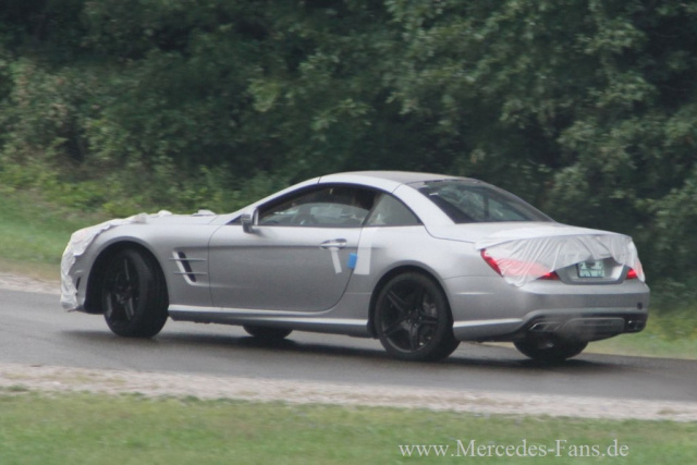 Fast ungetarnt ließ sich der Mercedes SL63 AMG blicken. Ob der neue SL63 AMG wohl auf dem Autosalon in Genf komplett die Hüllen fallen lässt?