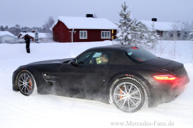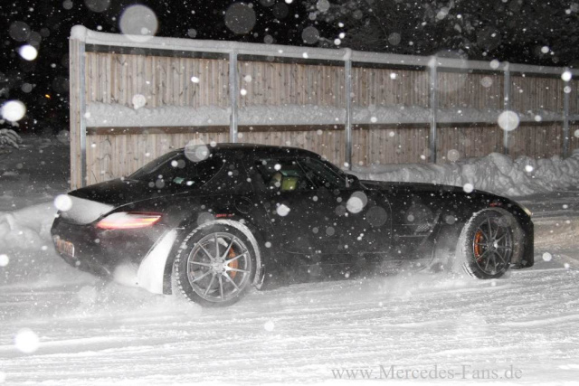 Bei Testfahrten am Polarkreis drehte der Mercedes SLS AMG Black Series Erlkönig erste Runden im Schnee.