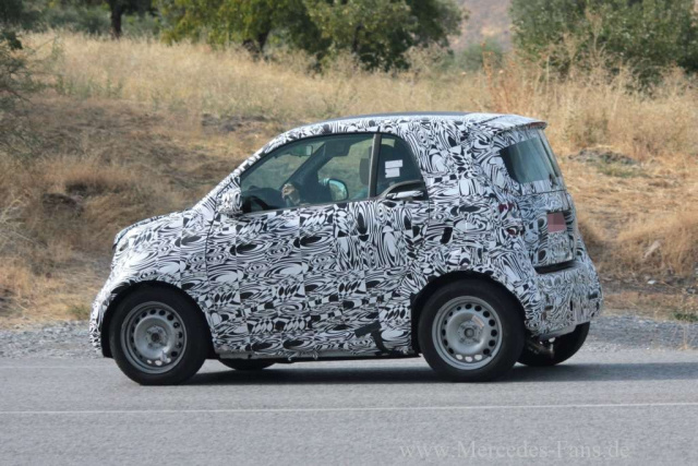 Dass 2014 die Marke smart wieder mit vier Sitzplätzen ins Rollen kommt, ist kein Geheimnis mehr. Aber auch bei der zweisitzigen Ausgabe wird es eine Veränderung geben. 2015 kommt die 3. Generation des smart fortwo auf den Markt. Der Mercedes-Fans.de Erlkönigjäger konnte jetzt die ersten Bilder von einem noch stark getarnten Prototypen des kommenden Zweisitzers schießen.