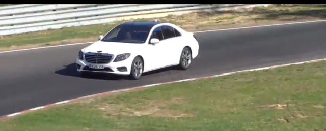 Nur noch wenige Tage, dann wird eines der vermutlich großartigsten Mercedes-Benz Projekte des Jahres 2013 der Öffentlichkeit präsentiert werden: Am 15. Mai feiert die neue Mercedes S-Klasse Generation ihre Weltpremiere. Die neue Mercedes S-Klasse ist jetzt - kurz vor ihrem Debüt auf großer Bühne - auf dem Nürburgring bei einer Testfahrt gefilmt worden. Das Video von dem nahezu ungetarnten S-Klasse-Testwagen dauert zwar nur rund 20 Sekunden, aber wir wollten Ihnen den Schnappschuss des Videofilmers nicht vorenthalten. (Bildquelle: YouTube)