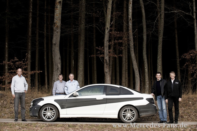 Von links nach rechts: Dr. Dieter Zetsche (Vorsitzender des Vorstands), Wilfried Porth (Vorstand Personal und Arbeitsdirektor), Dr. Joachim Schmidt (Mitglied d. Geschäftsleitung Mercedes-Benz Cars, Vertrieb & Marketing), Dr. Wolfgang Bernhard (Vorstand Produktion und Einkauf, Mercedes-Benz Cars, und Dr. Thomas Weber (Vorstand Konzernforschung & Mercedes-Benz Cars Entwicklung) und der Erlkönig in der Mitte ist das Vorserien-Coupé 028.