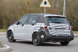 Under Construction: Das Heck des B-Klasse Erlkönigs sieht noch unfertig aus.