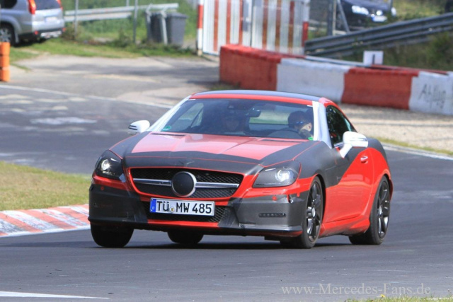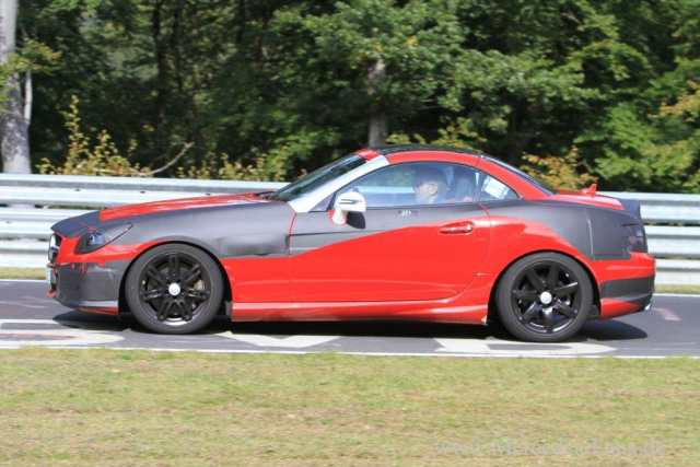 Schon wieder hat es beim Erlkönig-Jäger von Mercedes-Fans.de Klick gemacht. Diesmal ist unserem Auto-Spion ein Mercedes SLK Prototyp vor die Linse gefahren. Und zwar mit weitaus weniger Tarnung als jemals zuvor. In diesem fortgeschrittenen Stadium lässt der rote Prototyp Roadster schon viel erahnen, wie der neue Mercedes-Benz SLK, der Ende 2011 beim Mercedes Händler steht aussehen wird.