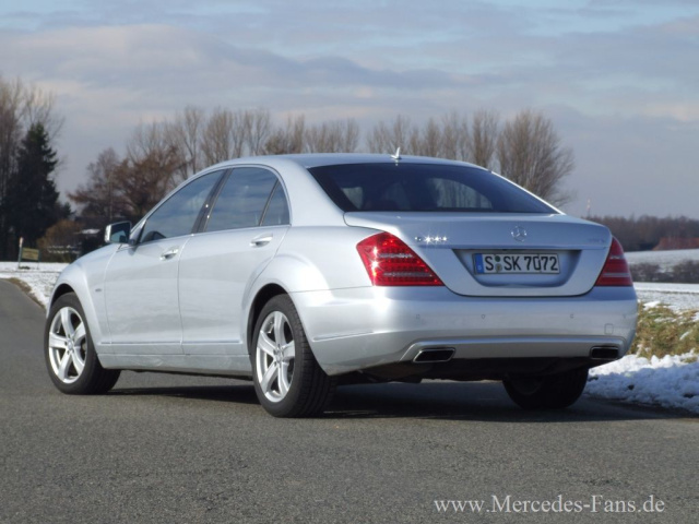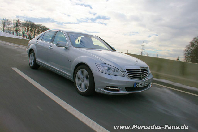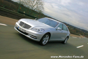 Der Mercedes S 400 kommt mit einem assistierenden Hybrid-System ins Rollen. Seine kombinierte Antriebseinheit aus Verbrennungsmotor und Elektromotor leistet 205 plus 15 kW und beschleunigt mit einem gemeinsamen Nenndrehmoment von bis zu 385 Nm binnen 7,2 Sekunden von 0 auf 100 km/h; die Höchstgeschwindigkeit beträgt 250 km/h (abgeregelt). Da der S 400 seine Stromstöße als unterstützende Impulse empfängt, kann er auf den Ballast eines schweren Nickel-Metall-Hydrid-Akkus verzichten. Für seine Extraportion Antriebssaft genügt eine kleine, sehr sehr leistungsstarke Lithium-Batterie, die bei Bremsvorgängen durch das rekuperative Bremssystem gespeist wird. Dieser hochmoderne Stromspeicher ist im Motorraum untergebracht und soll in punkto Lebensdauer seinen Träger überflügeln.