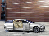 Während die Vordertüren konventionell an der A-Säule angeschlagen sind und nach vorne öffnen, gleiten die hinteren Türen beim Öffnen zurück. Die innovative Schwenkarmkonstruktion ermöglicht den Verzicht auf sichtbare äußere Führungsschienen, sodass der F 800 Style bei geschlossenen Türen wie aus einem Guss wirkt. Ob das in die Serie gehen wird?