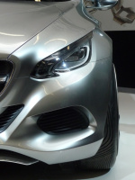Und diesem Anspruch wird der im Farbton Graumetallic in ALU-BEAM Technik lackierte F800 vollauf gerecht. Das Auge entdeckt atemberaubende Linien mit kurzen Karosserieüberhängen und einer elegant fließenden, coupéhaften nur 1.43 m hohen Dachlinie, die in einem fast schon klassischen Grill münden. Die Gestaltung des Grills mit zentralem Sternerinnert an den 300 SL, Dramatische Charakterlinien und ausgewogene Proportionen verpassen dem Fünfsitzer eine sportlich-elegante Seitenlinie und die Grafik der Leuchten ist ohne Übertreibung in jedem Fall geschmackvoll, fast schon dramatisch. Auf den Betrachter wirkt die Linienführung, als wäre das silberne Metall äußerst straff über einen kraftvollen Körper gespannt worden.